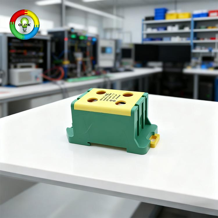 Bloco de terminais de parafuso para trilho DIN de alimentação industrial OLINK UTJ5 - Contato de alumínio, 220 A, barramento de plástico