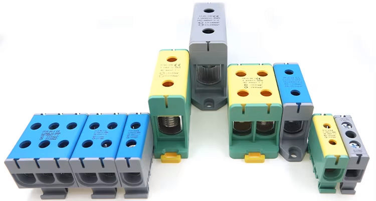 Blocos de terminais de parafuso para trilho DIN, certificados para uso automotivo de 600 V - Múltiplas classificações de corrente (60 A, 80 A, 200 A, 250 A), multivias