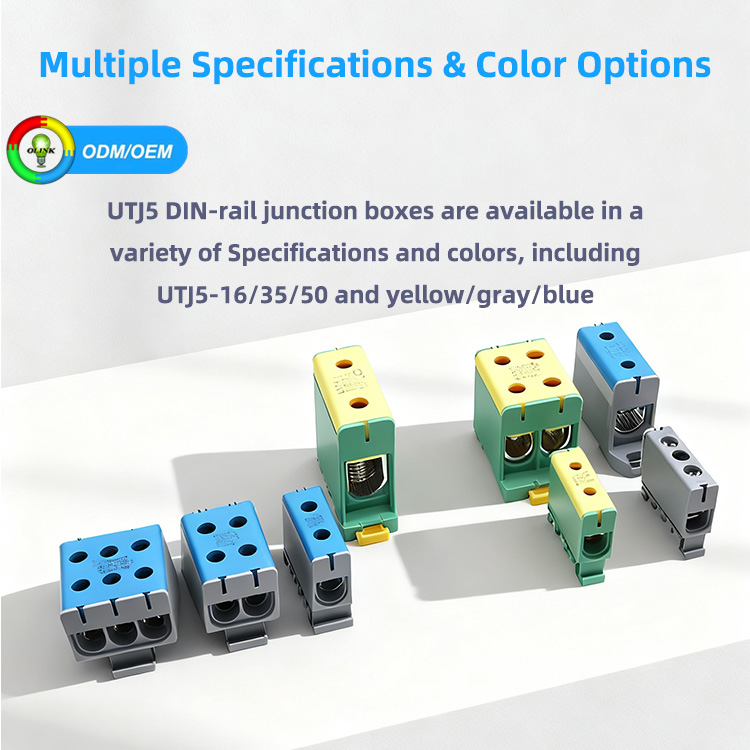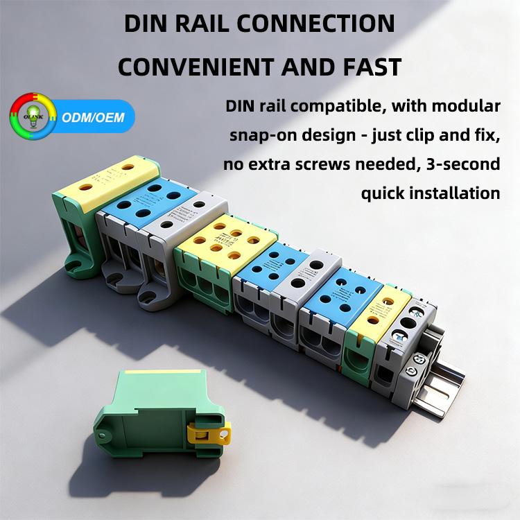 Bloco de terminais de parafuso para trilho DIN de alimentação industrial OLINK UTJ5 - Contato de alumínio, 220 A, barramento de plástico